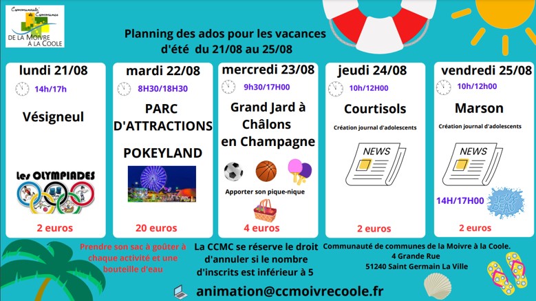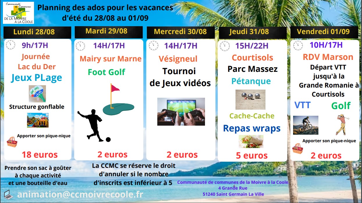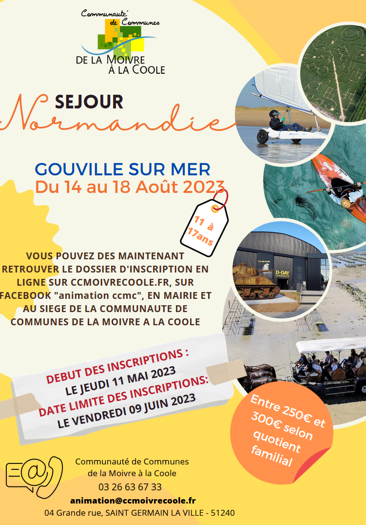La CCMC organise un séjour été du lundi 14 au vendredi 18 août 2023 à Gouville-sur-Mer en Normandie pour les jeunes de 11 à 17 ans.