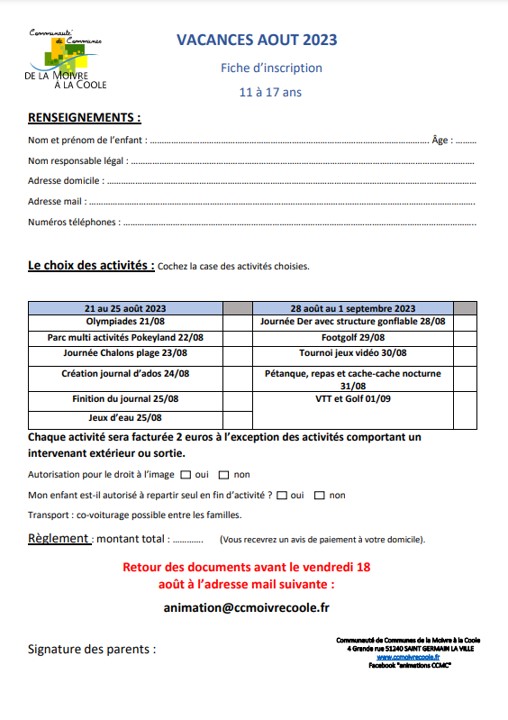 ou sur le site internet Accueil de Loisirs Vallée de la Coole