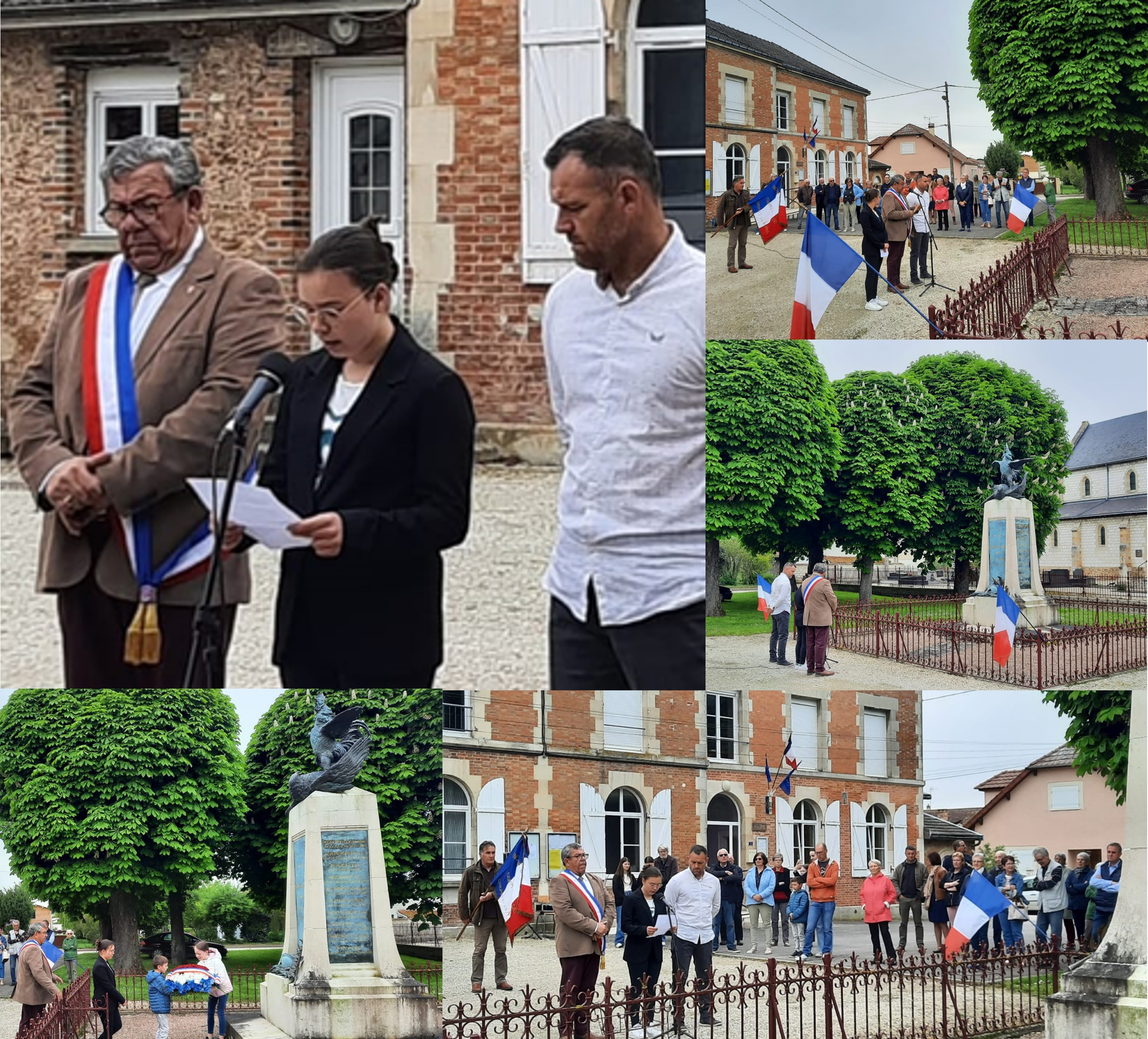 La municipalité conviait la population à 11 heures 30 au monument aux morts pour la cérémonie de commémoration de la Victoire du 8 mai 1945 et à l'apéritif qui a suivi.