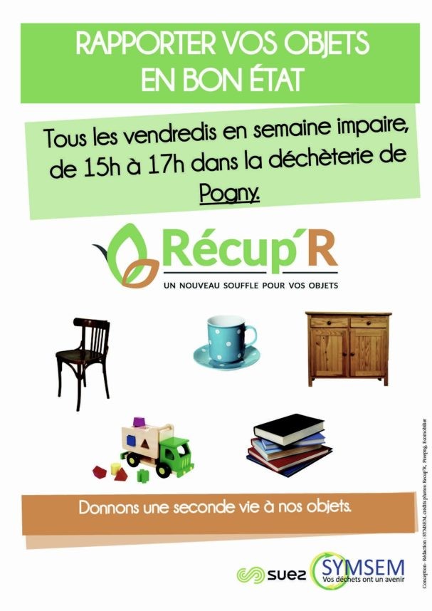 Vous pouvez donner vos meubles, chaises, produits de décoration, livres, vaisselle, bibelots, jouets pour enfants… en bon état, à l'association Récup'R présente dans certaines déchèteries du SYMSEM.