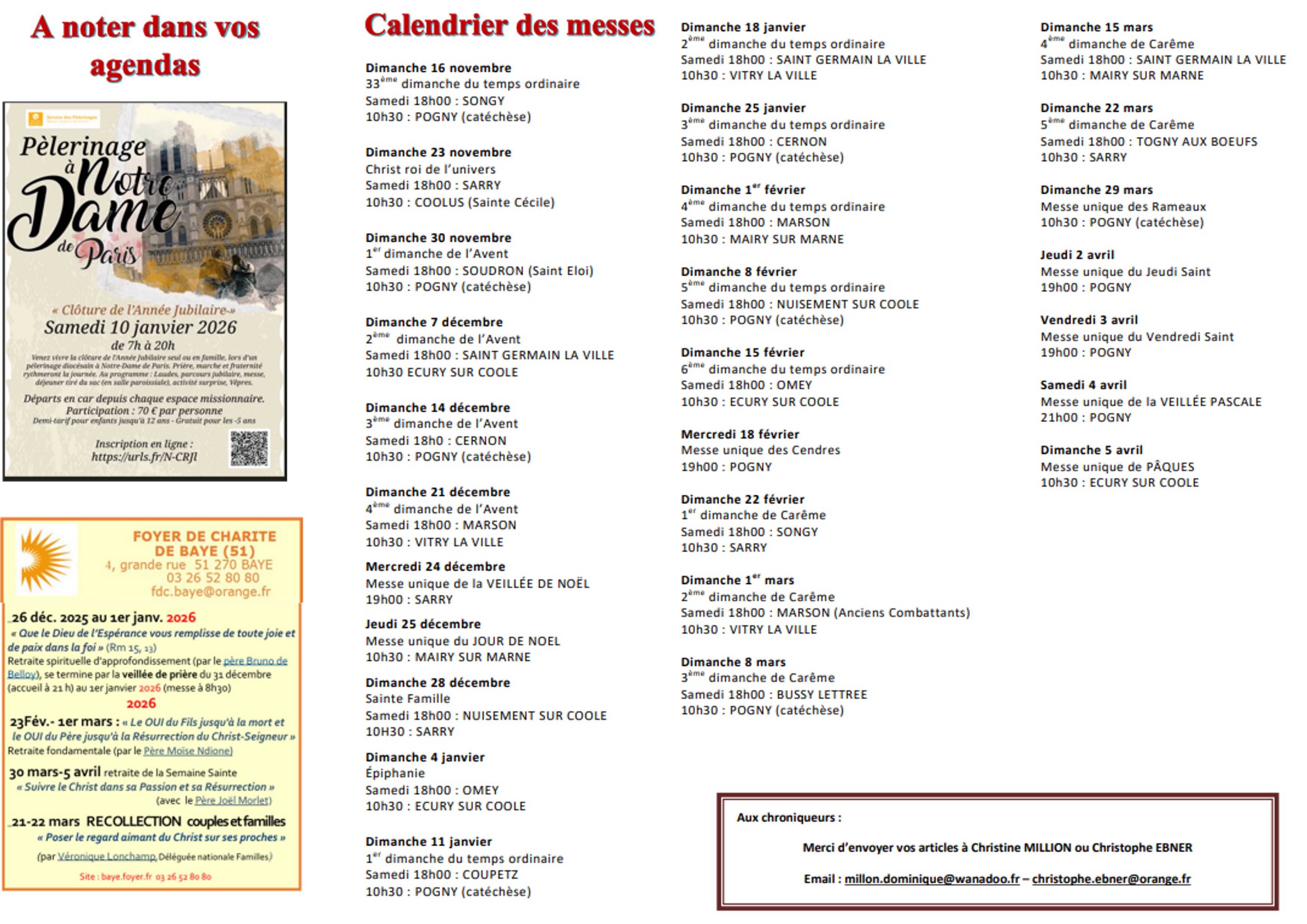 Pour contacter l'équipe paroissiale.